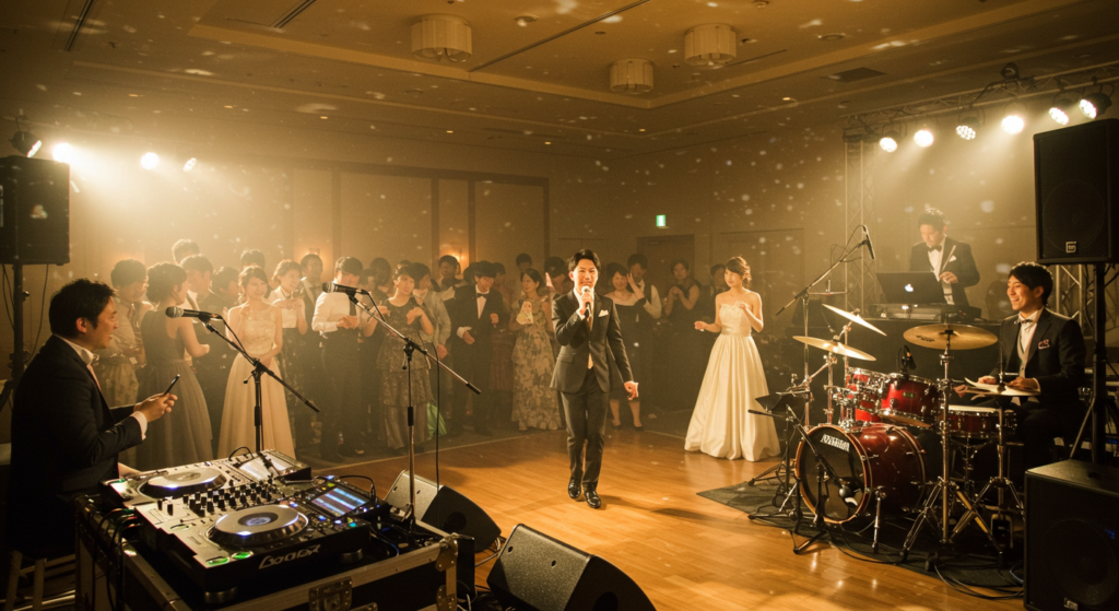 音楽による演出も、カジュアル結婚式の魅力です。生バンドの演奏、DJタイム、アコースティックライブなど、様々な形式での音楽演出が可能になります。