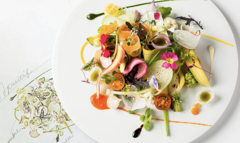シェフが丹精込めて育てた野菜は、その日のうちに収穫され、料理として提供されます。素材本来の味わいを活かした創作料理は、見た目の美しさだけでなく、味わいも絶品です。