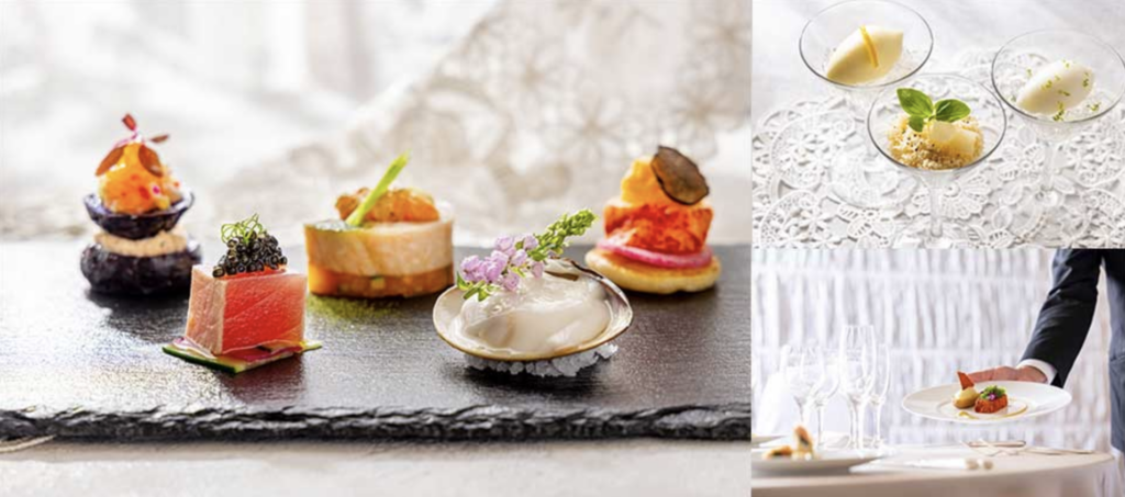 40種類以上のメニューから自由に選べるプリフィックススタイルは、新郎新婦の個性やテーマを料理に反映させることが可能です。ゲストにとっても特別な食体験となるよう、美味しさと見た目の両方で驚きを提供する、まさに一流ホテルならではの婚礼料理です。