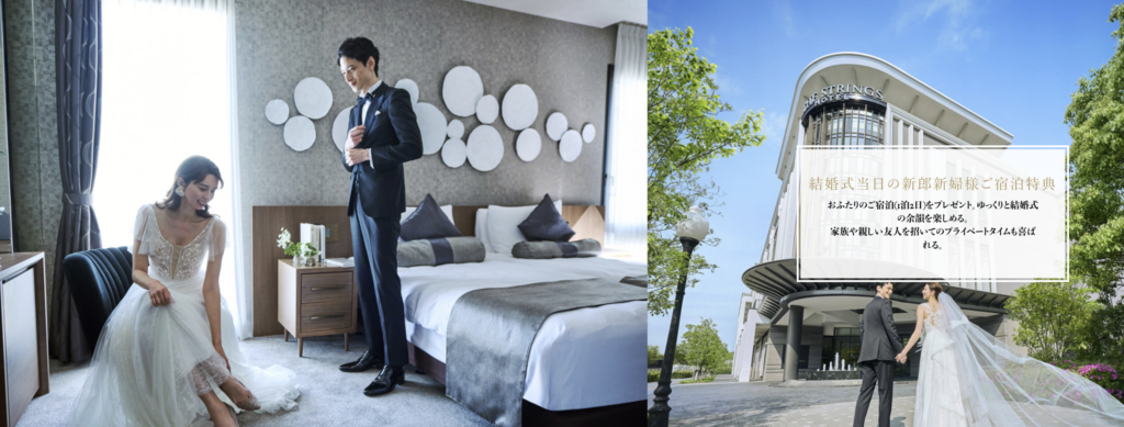 特徴3:結婚式当日の新郎新婦様の宿泊特典がある