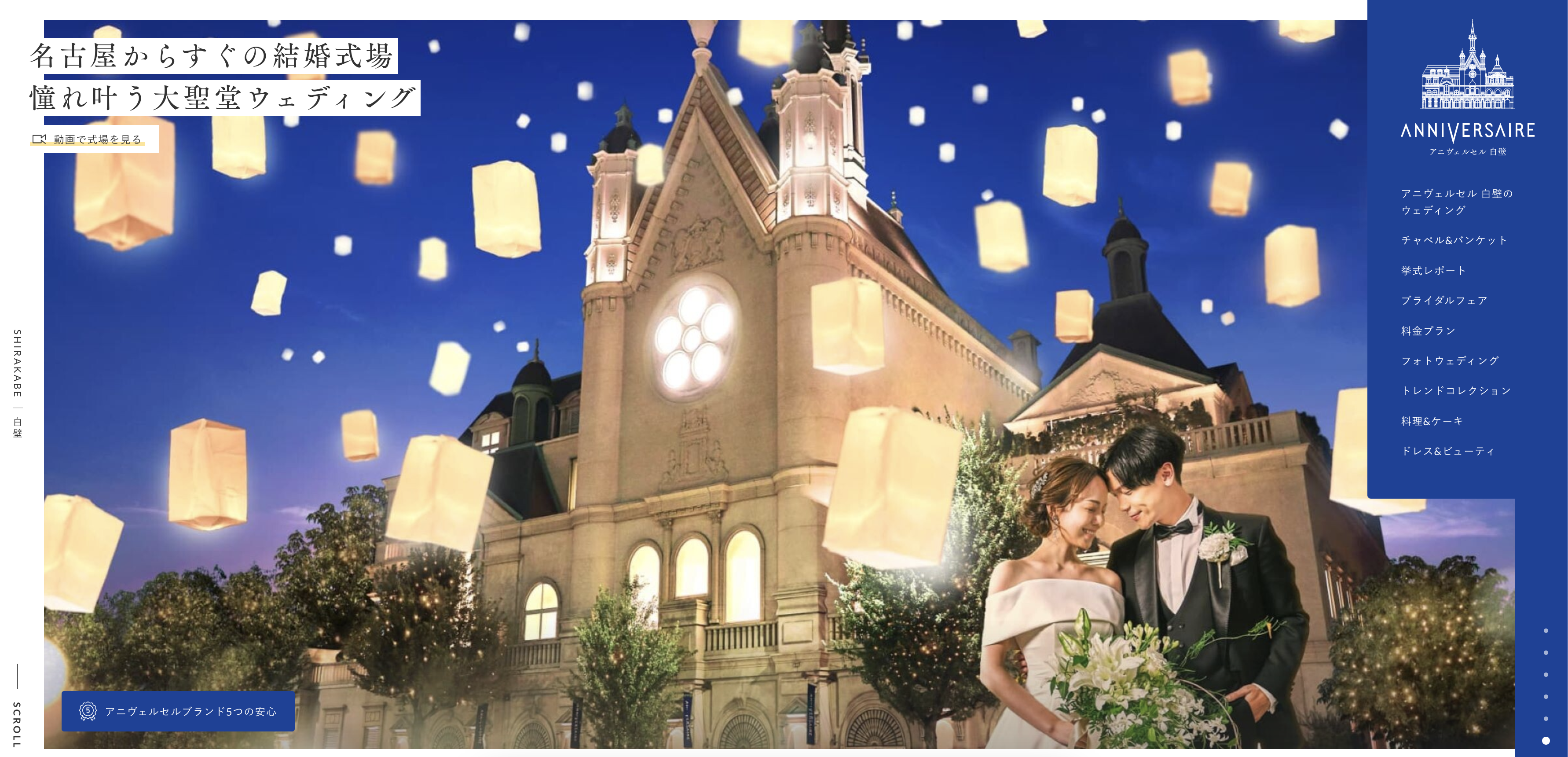 アニヴェルセル白壁は、名古屋市東区に位置する、ロマンチックで温かみのあるゲストハウス型結婚式場です。青いバージンロードとステンドグラスが印象的な独立型チャペルは、厳かで感動的な挙式を演出します。 全天候型アトリウムでは、天候を気にせずフラ... -